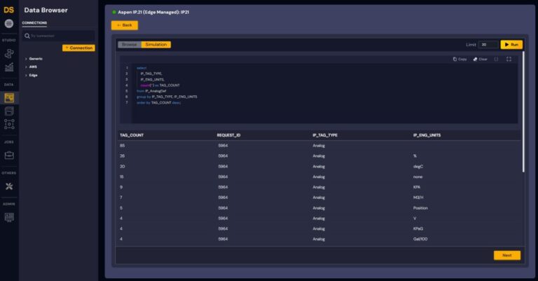 - Continuous delivery of IP.21 time-series data into downstream systems
