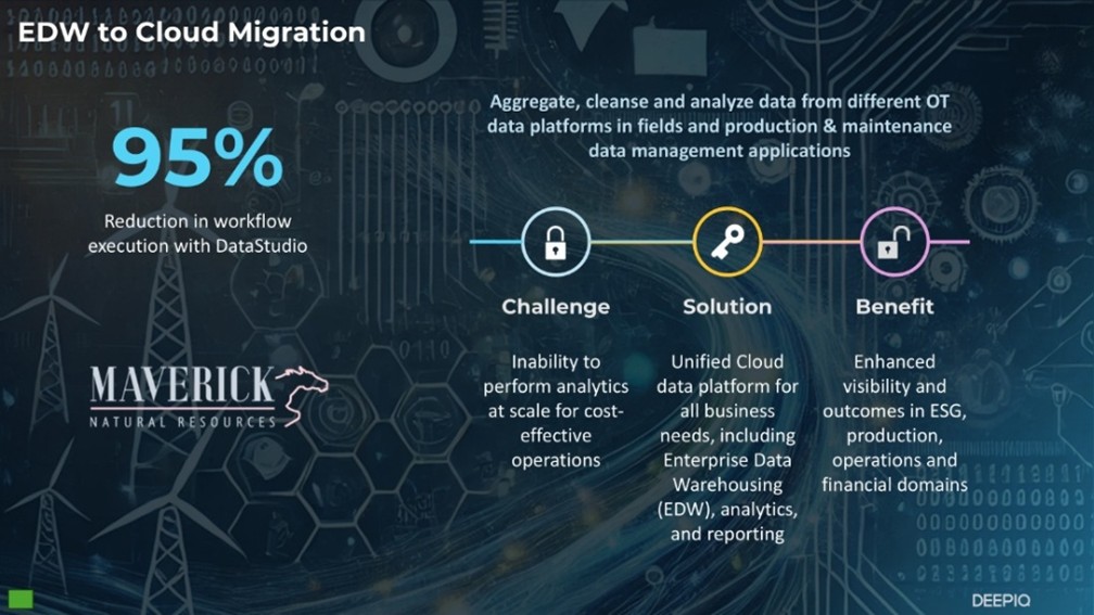 • 95% workflow reduction for EDW-to-cloud migration with Maverick Natural Resources