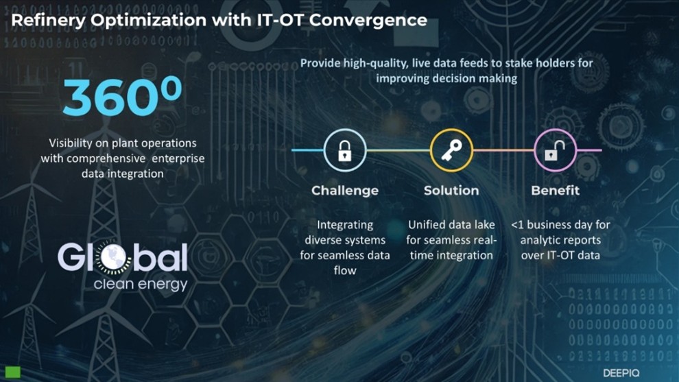 • <1 day IT-OT reporting latency in refinery operations at Global Clean Energy