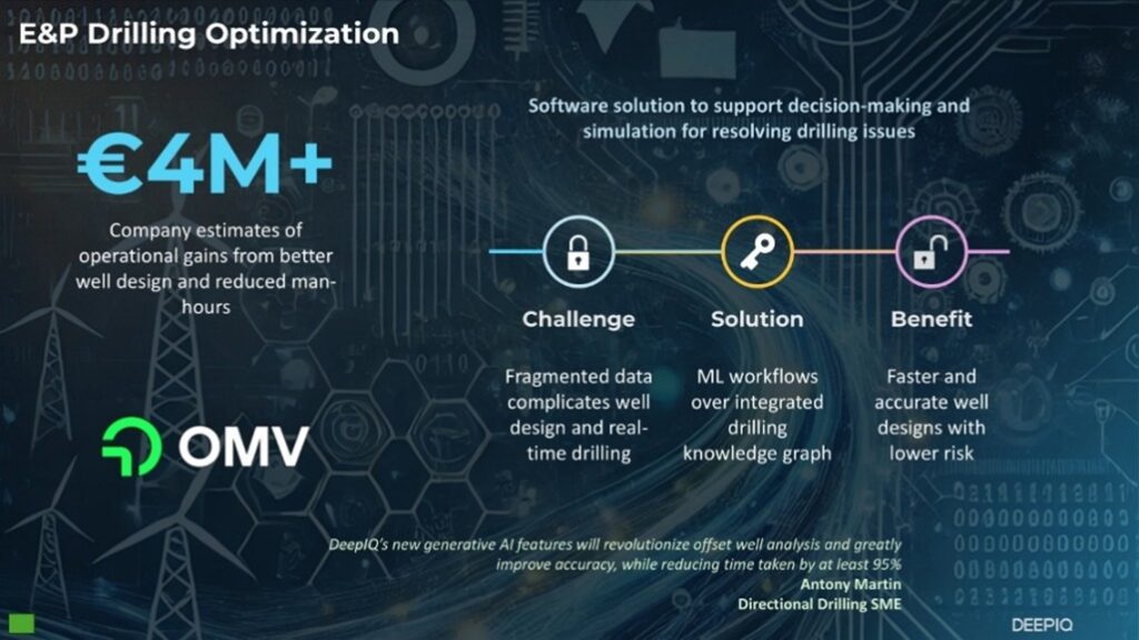 DeepIQ partnered with OMV to optimize drilling operations using a Databricks-powered architecture that integrates fragmented operational data into a unified, ML-driven environment.  At the core of the solution is a drilling knowledge graph built on data ingested and transformed through Databricks Delta Lake, enabling scalable analytics and machine learning workflows.