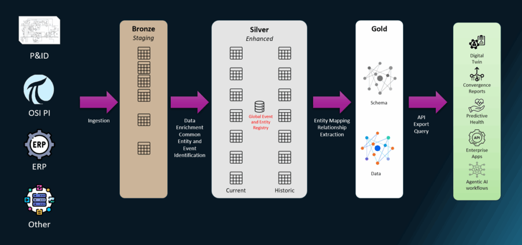 The result is a semantically rich, queryable model that links operational data, engineering context, and business intelligence into a single digital twin.