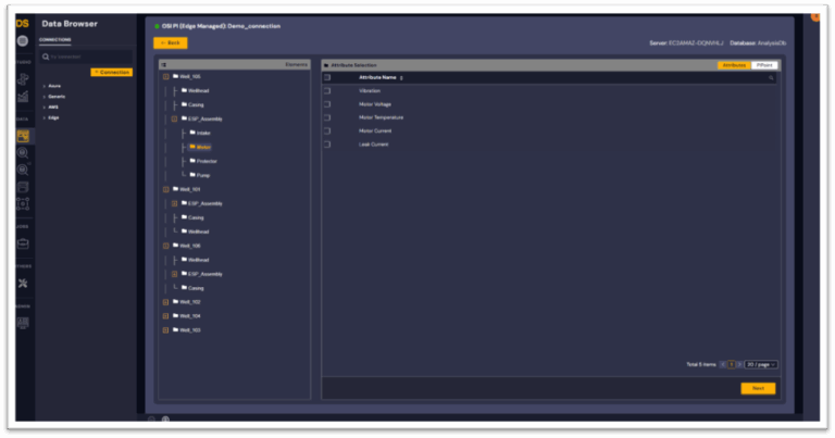 The DeepIQ PI Ingestion Workflow connects to the OSIsoft PI AF server and extracts: